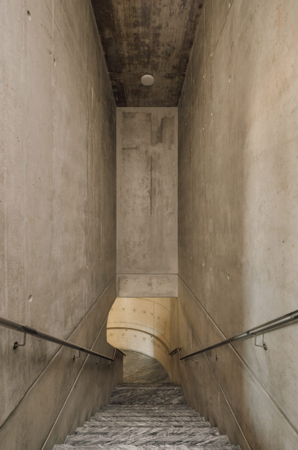 건물 내부는 노출된 콘크리트로 마감된 이동 공간이 밝은 흰색의 치료 구역과 연결되며, 원형 채광창을 통해 자연 채광이 들어오는 석재 타일로 마감된 욕실이 특징입니다. 설계 팀은 "건물의 거친 외관이 정원의 녹색과 밝은 실내 분위기와 대조를 이룬다"고 설명했습니다.